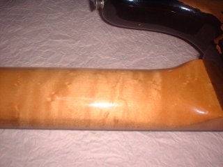 ネックもトラ目とバーズアイが入り乱れています。ビンテージものはネックの握りは微妙にちがいますが、このものはネックに厚みがあります。厚みのあるものの方が,力強い音質を得られます。